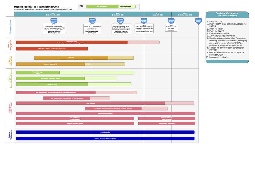 The roadmap is available in the Mojaloop GitHub, in the Product Council repo.
