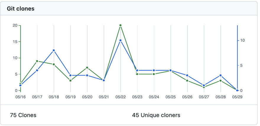 Hi folks, it was fun to be invited to help out at the DFS labs Mojaloop sprint last week where as part of their projects a number of new organisations got Mojaloop running for the first time as well as some trying out v15.0.0. A (Mojaloop) community member advised me recently to keep a watch on the stats for mini-loop and so I thought I had better look at the repo traffic as perhaps the hack-a-thon traffic might show up. I believe there is some base level of cloners from "bots" unrelated to anything in our Mojaloop project (typically 6-8 from what I have read) the rest as far as I can tell seem to be genuinely indicative of folks who are installing or at last intending to install Mojaloop. To me this continues to be very gratifying, to see the hard work of the community being used and to see glimpses of the Mojaloop vision being realised.